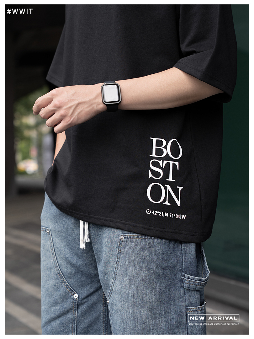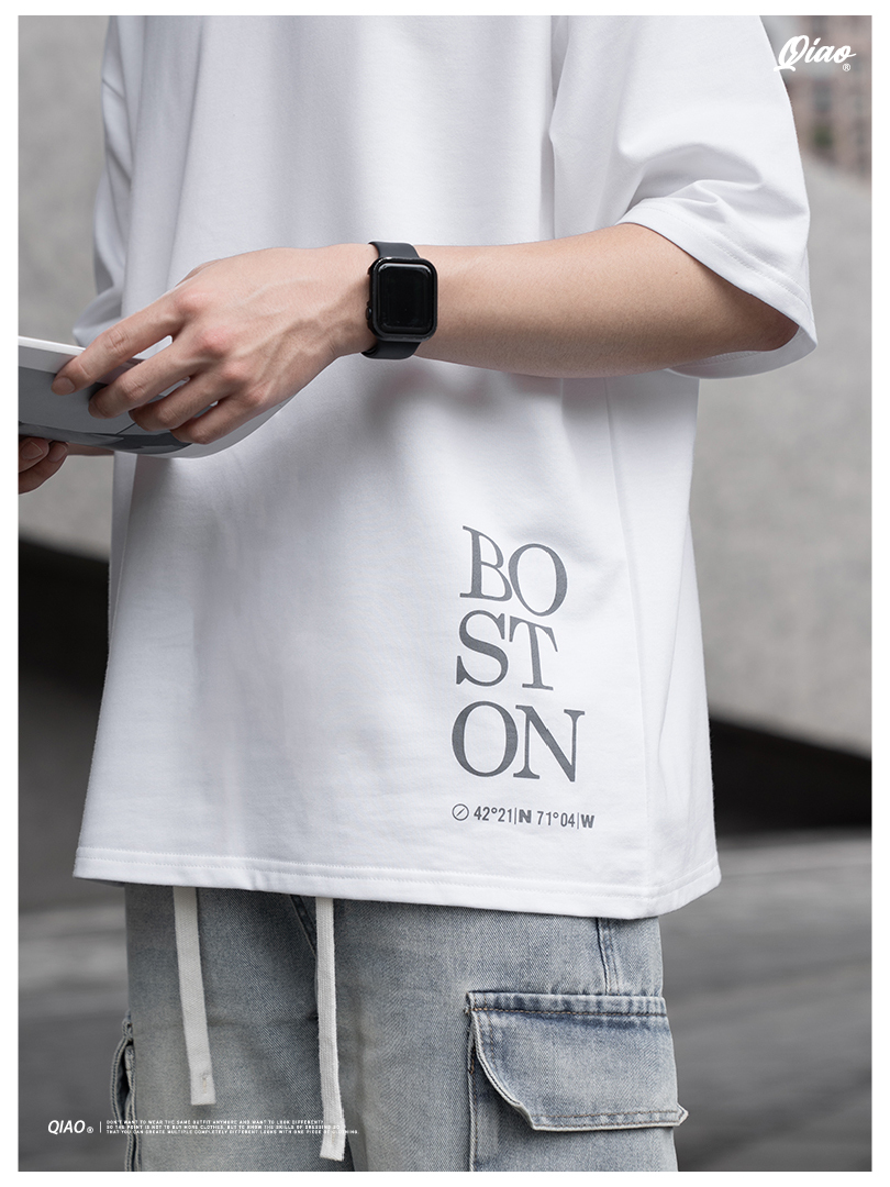 「BOSTON座標Tee」設計簡約卻超有巧思,印刷位置選在下擺與背後偏角,低調又特別。