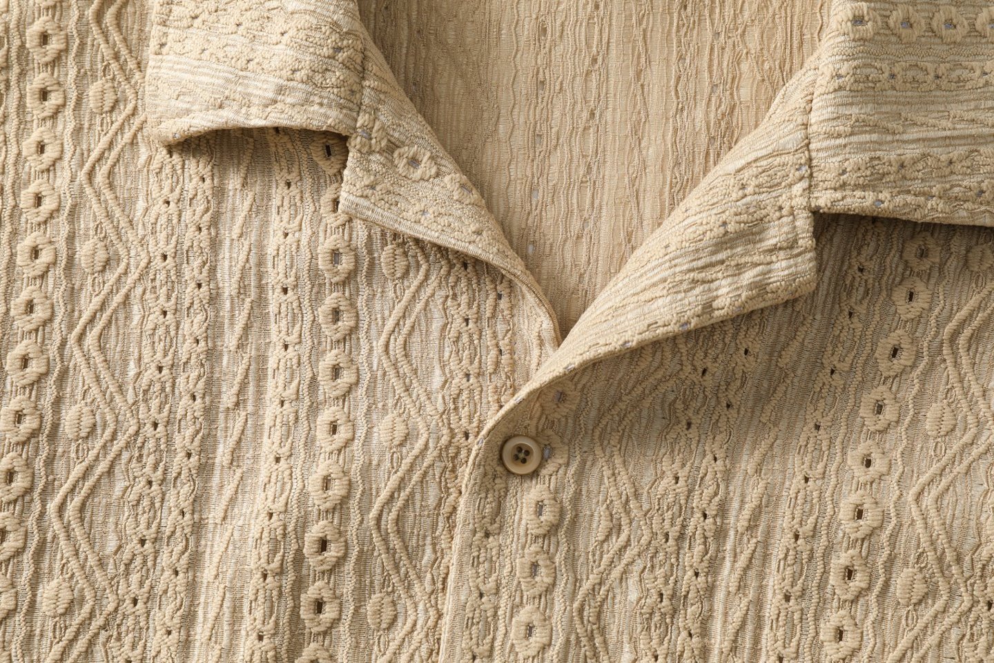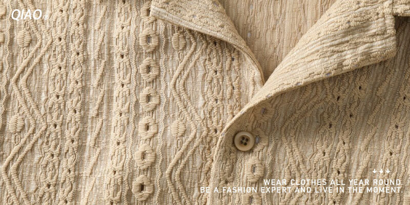 復古風肌理花古巴衫,以立體凹凸的織紋面料取代常見印花,低調中展現細節質感。