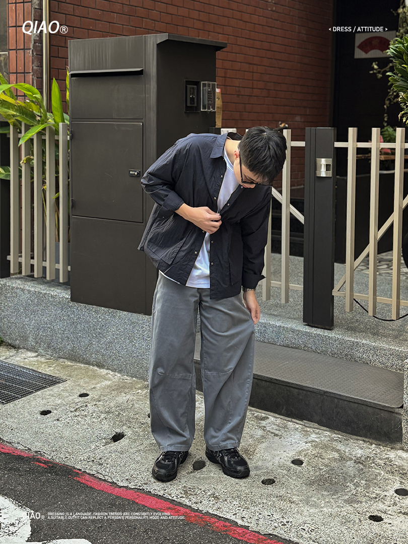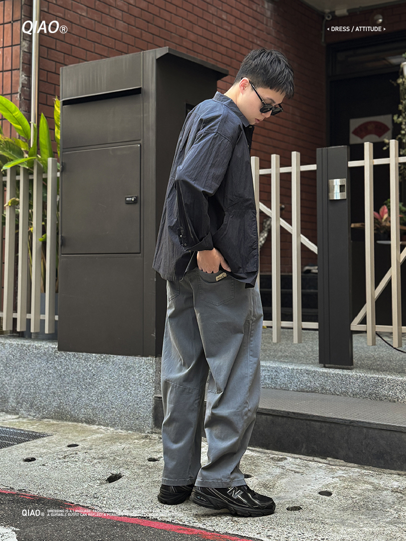 前片拚縫設計延伸至褲腳,增加視覺層次與線條拉伸感
