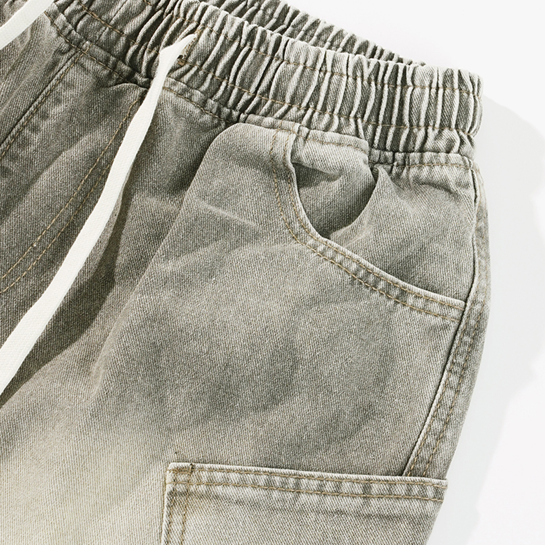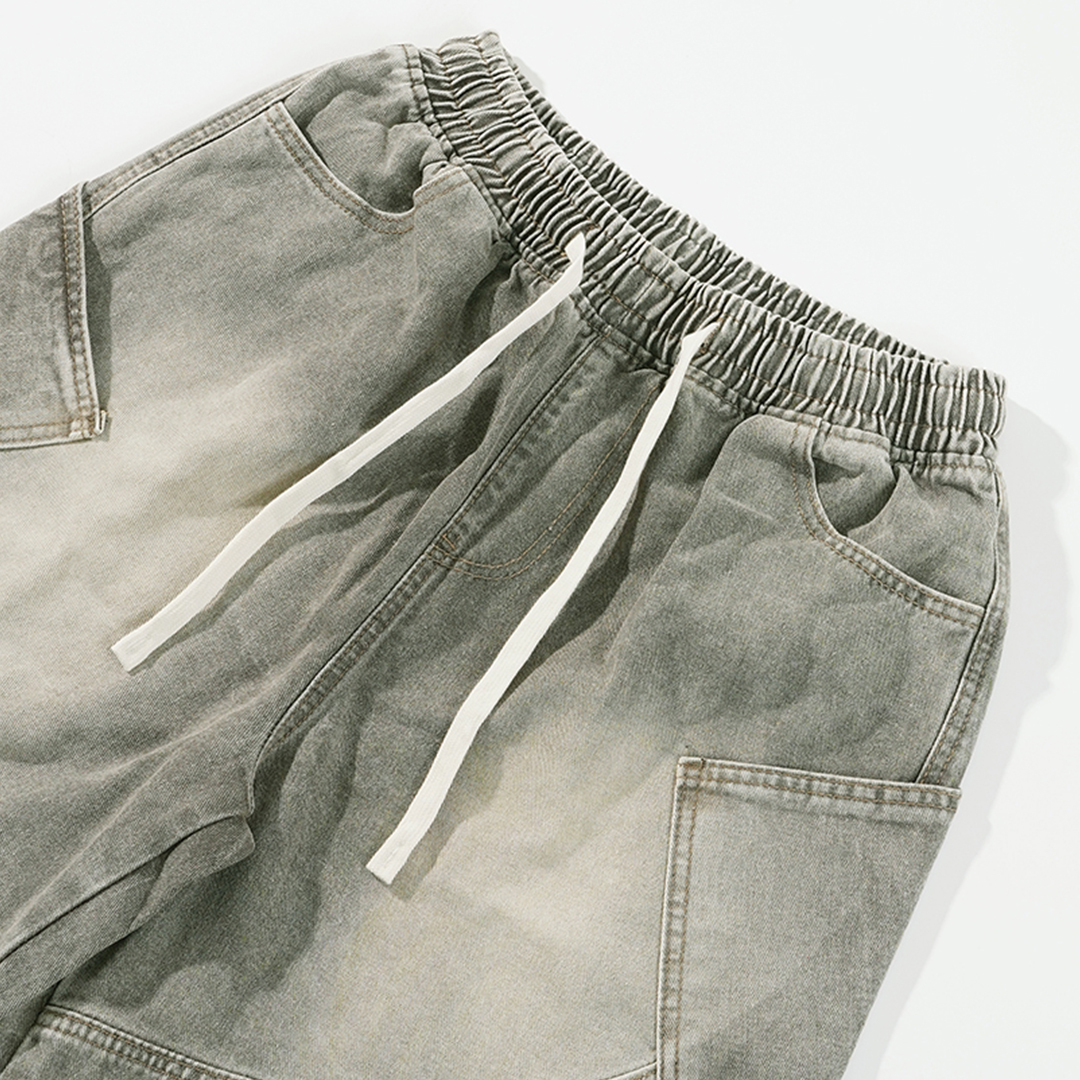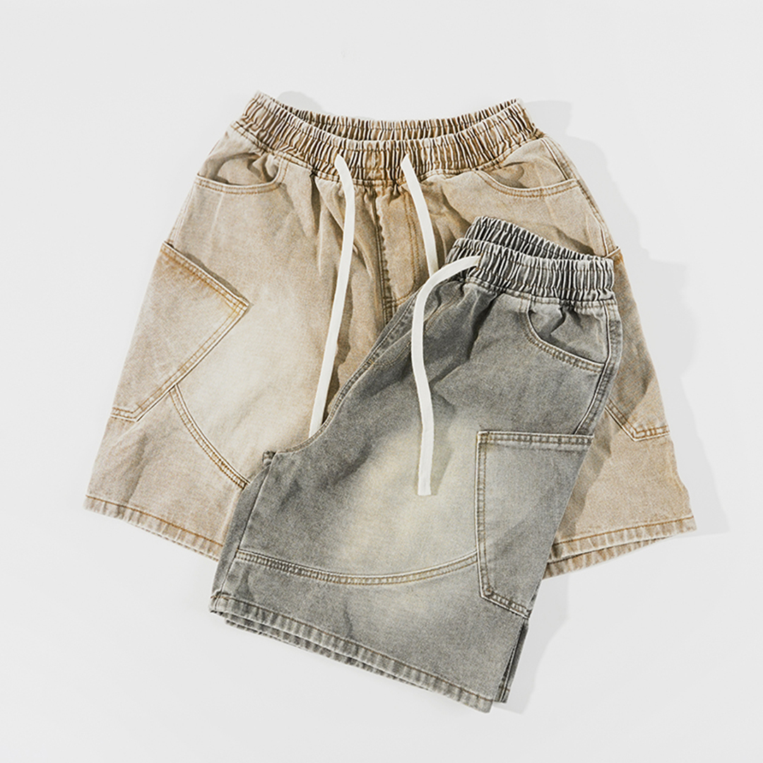 ✌復古色 彎刀側袋 水洗 牛仔短褲 LJ-2533