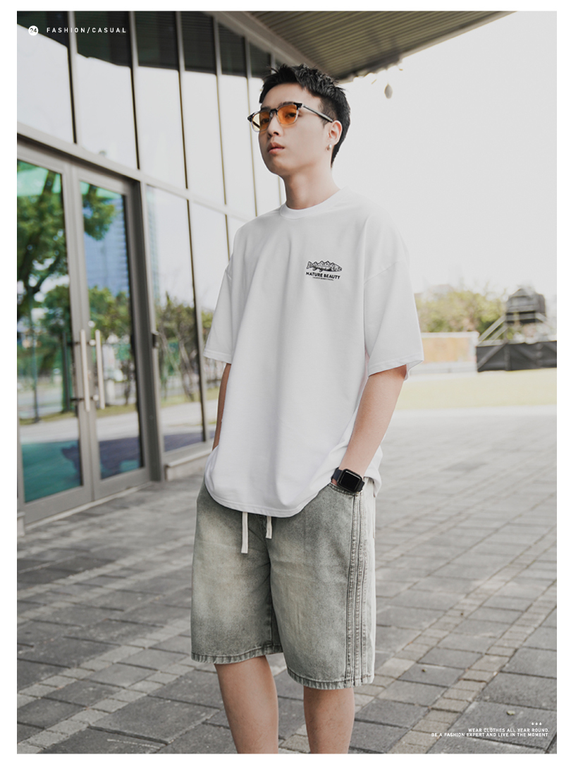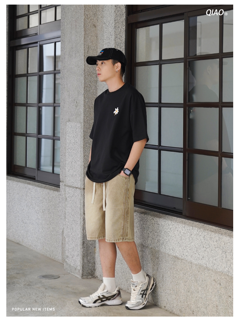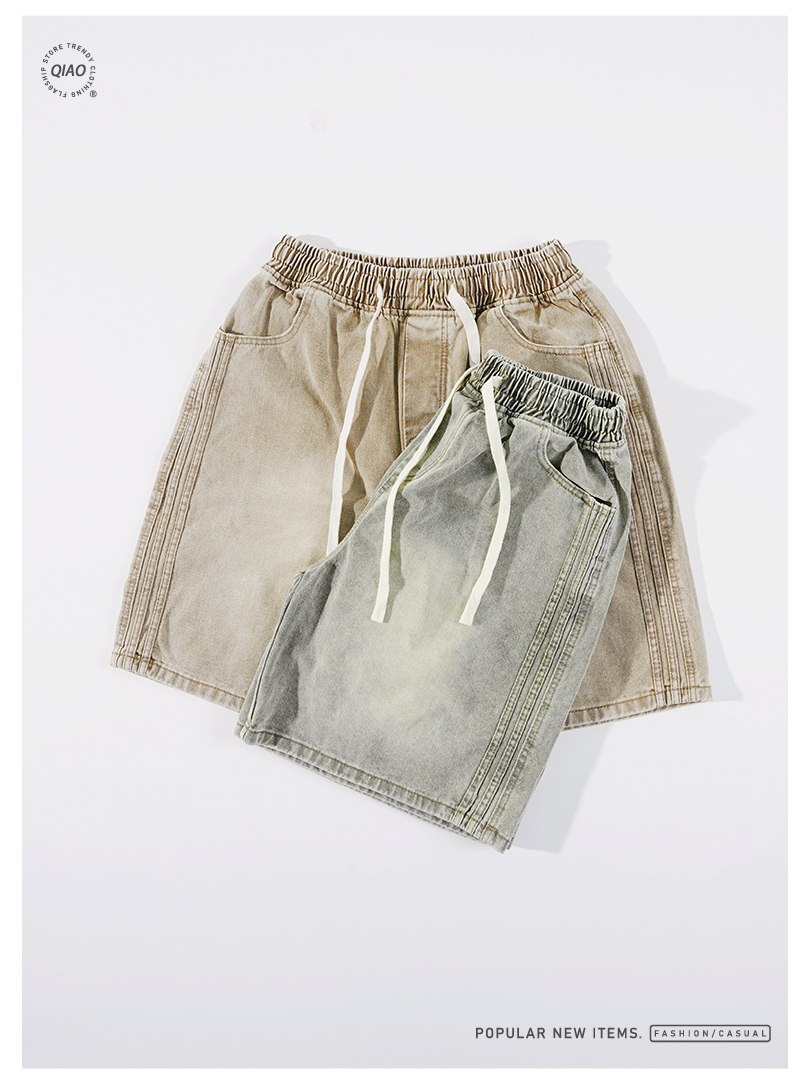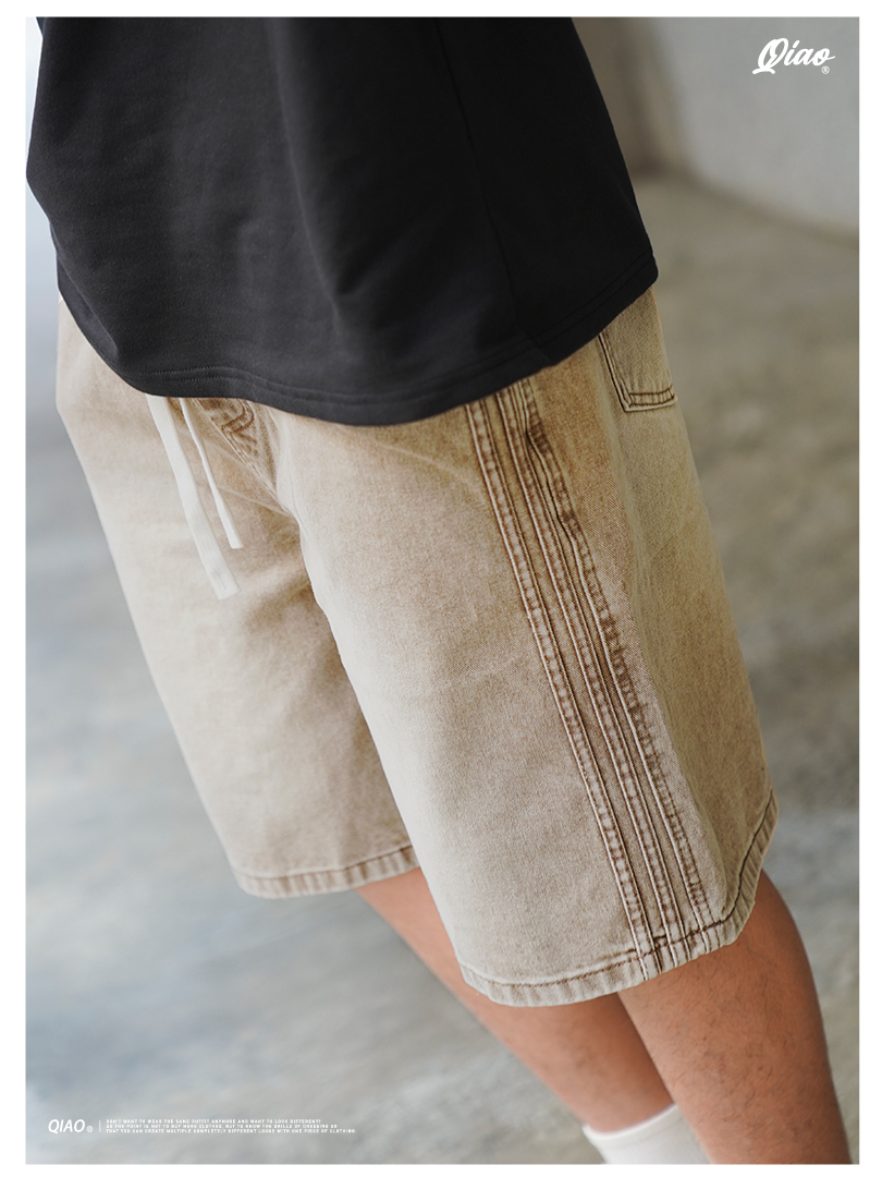 ✌復古色 側直紋 水洗 牛仔短褲 LJ-2534