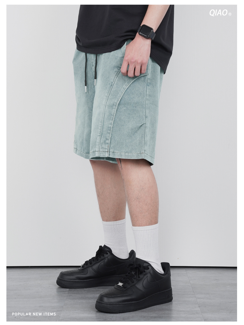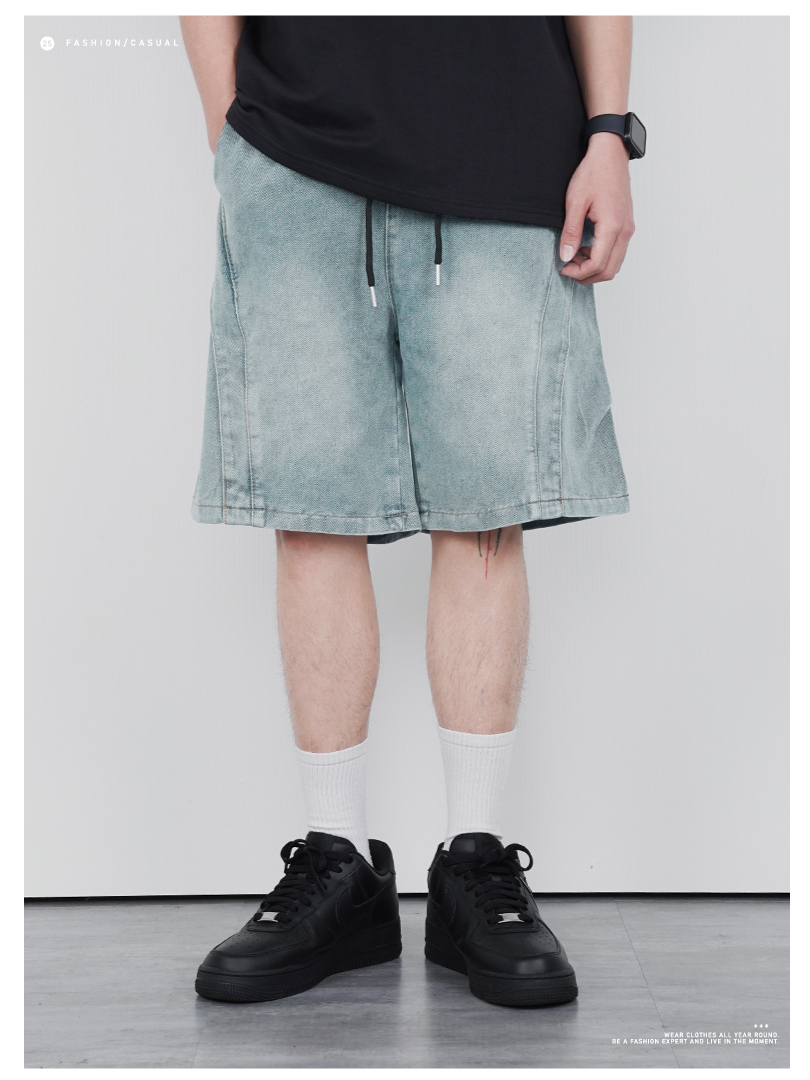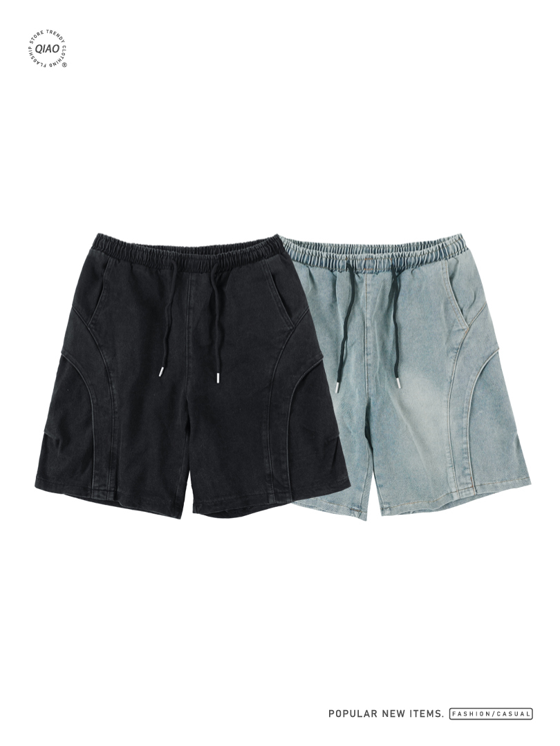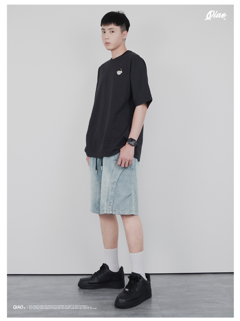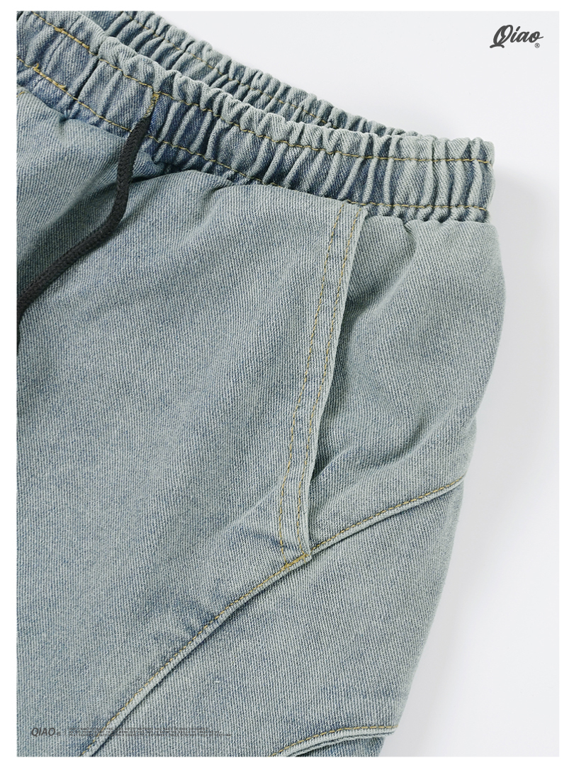 面料選用中磅斜紋棉質丹寧布,手感紮實卻不悶熱,夏天穿很可以👍,褲頭則為鬆緊腰設計 + 綁繩,無拘感大加分✅