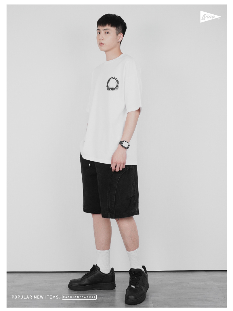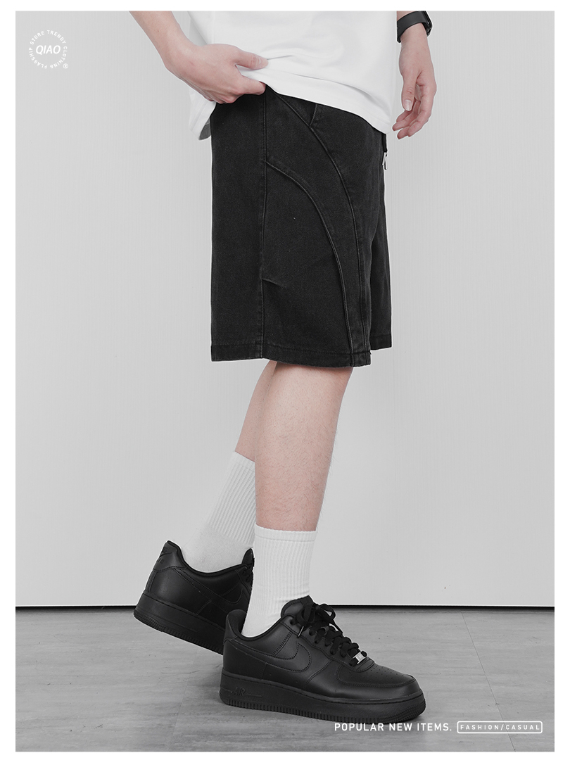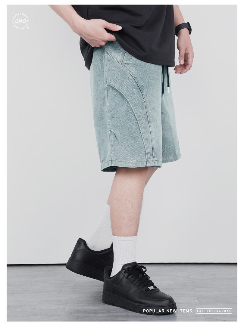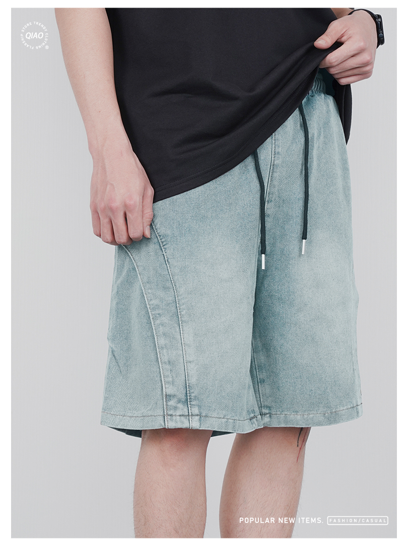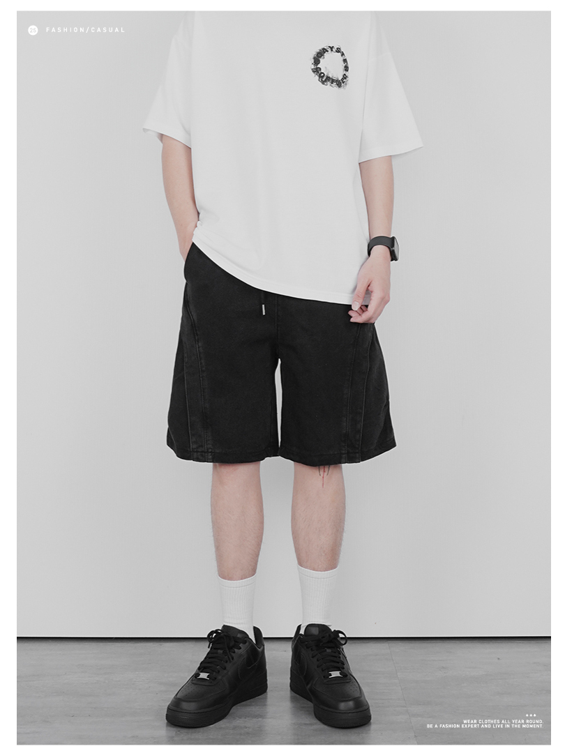 面料選用中磅斜紋棉質丹寧布,手感紮實卻不悶熱,夏天穿很可以👍,褲頭則為鬆緊腰設計 + 綁繩,無拘感大加分✅