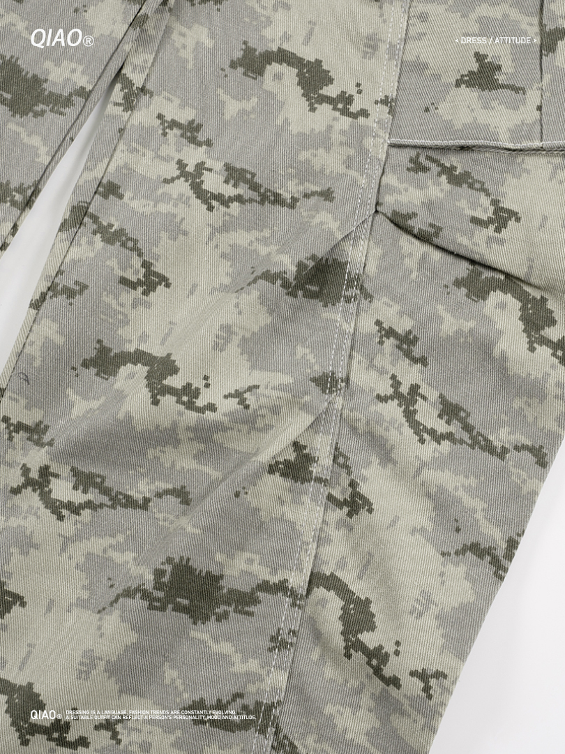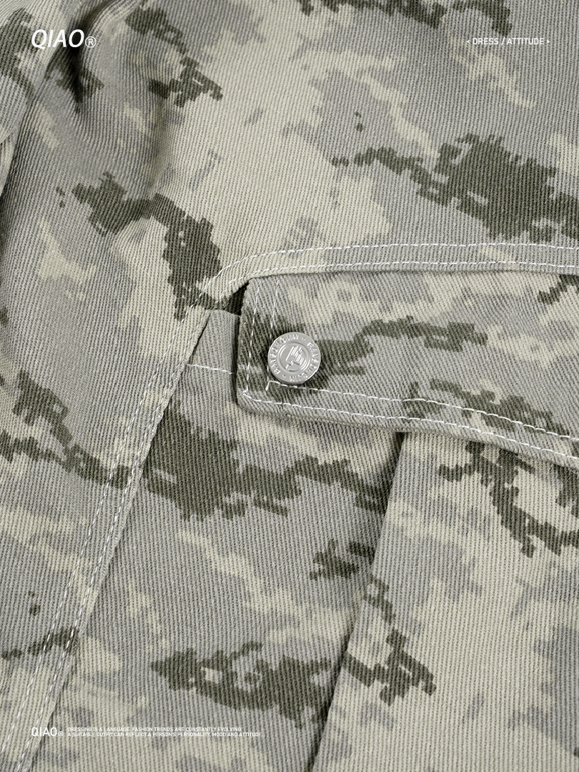 中磅斜紋棉面料 未來感數位印刷 低飽和灰綠色調