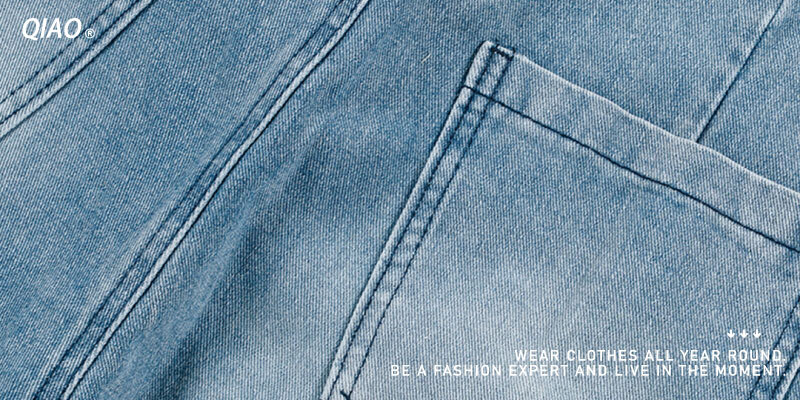 水洗藍色布料營造出復古氛圍,立體工裝口袋的拼縫設計,寬寬鬆鬆自由感的視覺層次很夠!