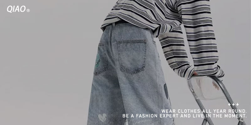 整件褲子是水洗淺藍加上大面積手繪風格的狗狗塗鴉,看起來很輕鬆、很俏皮,都說穿上去心情都變好了。
