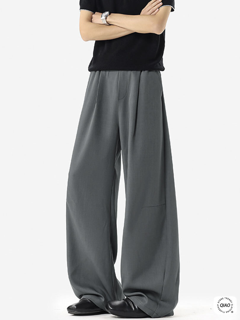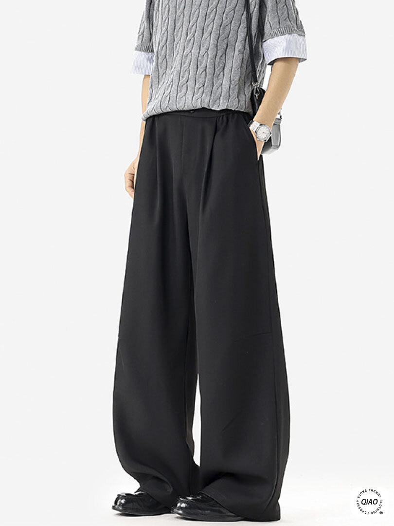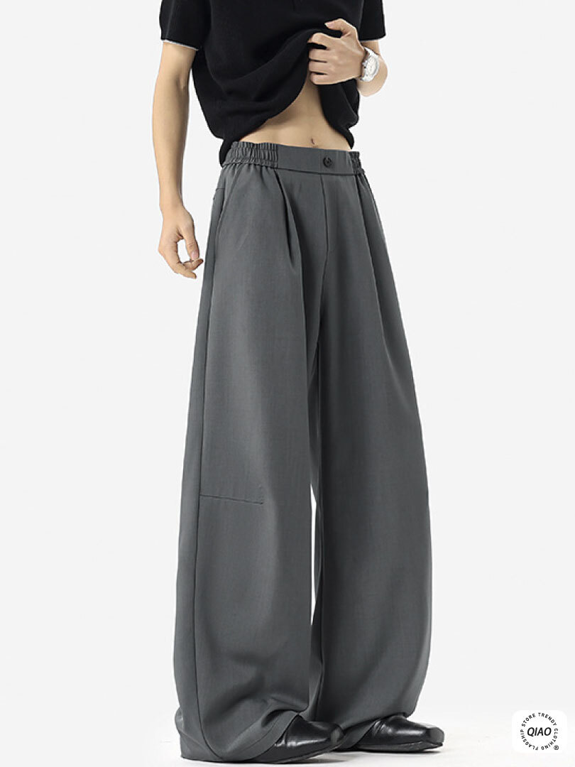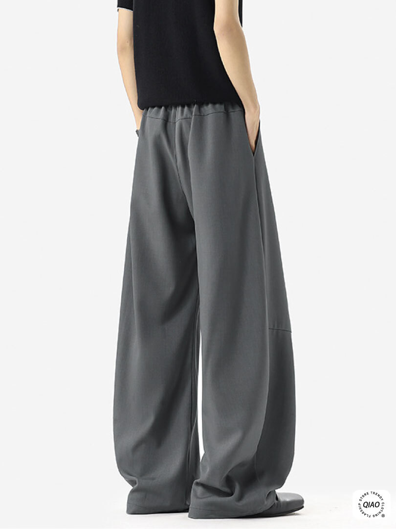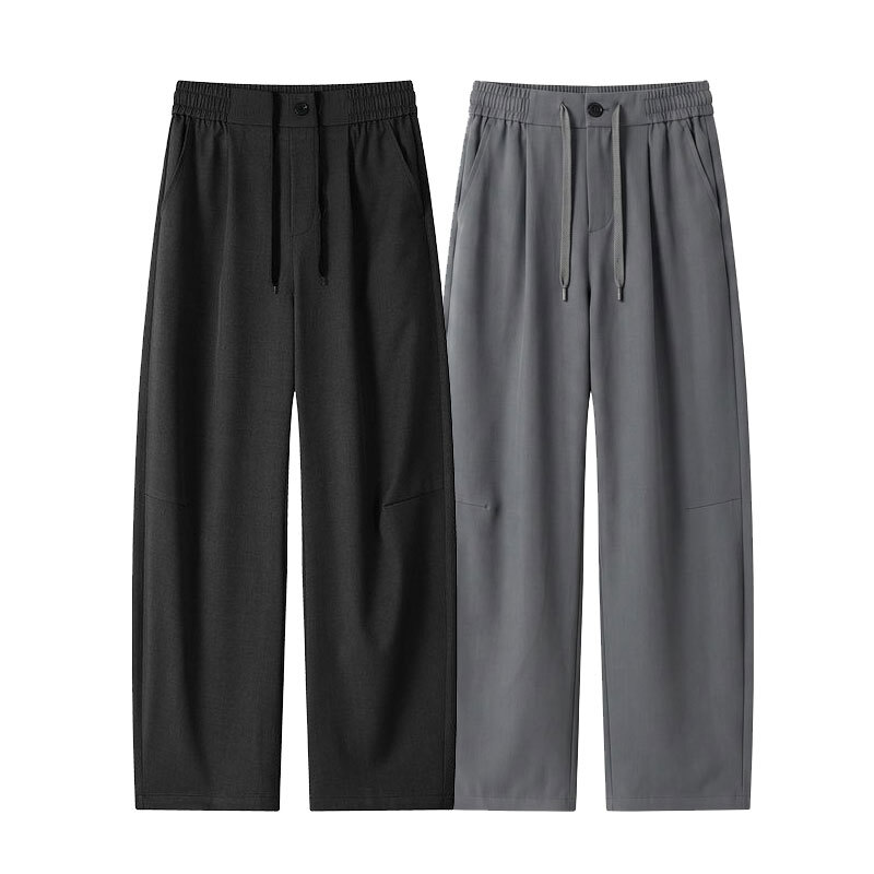 風格簡約、線條俐落,帶有西裝褲的正式感與鬆弛垂墜感