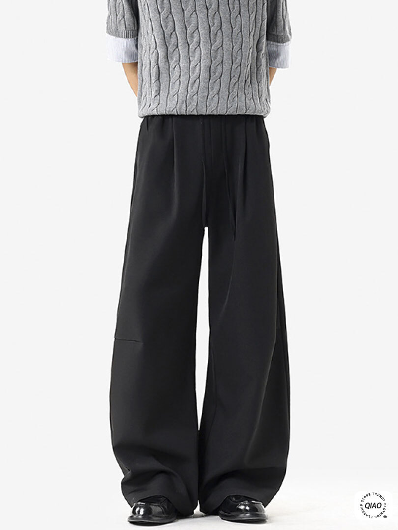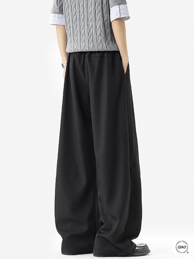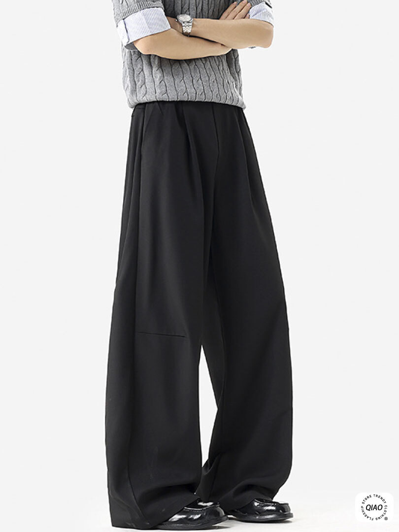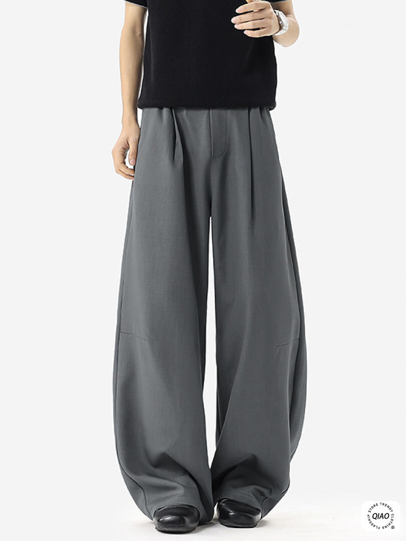 風格簡約、線條俐落,帶有西裝褲的正式感與鬆弛垂墜感