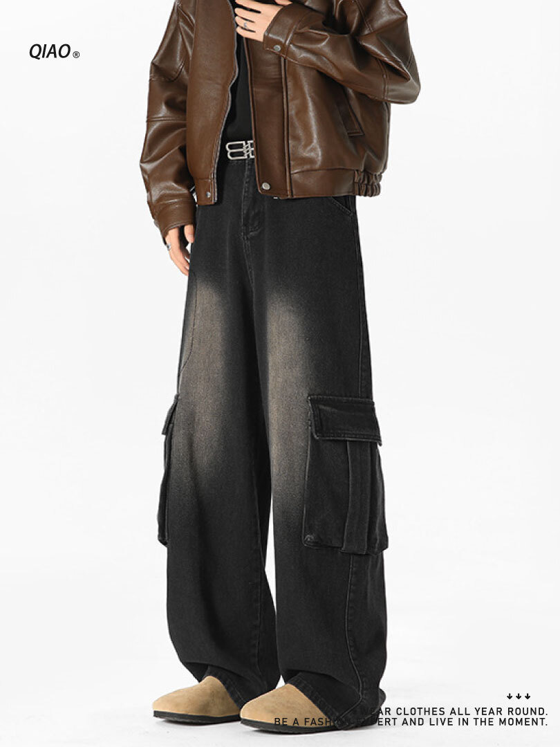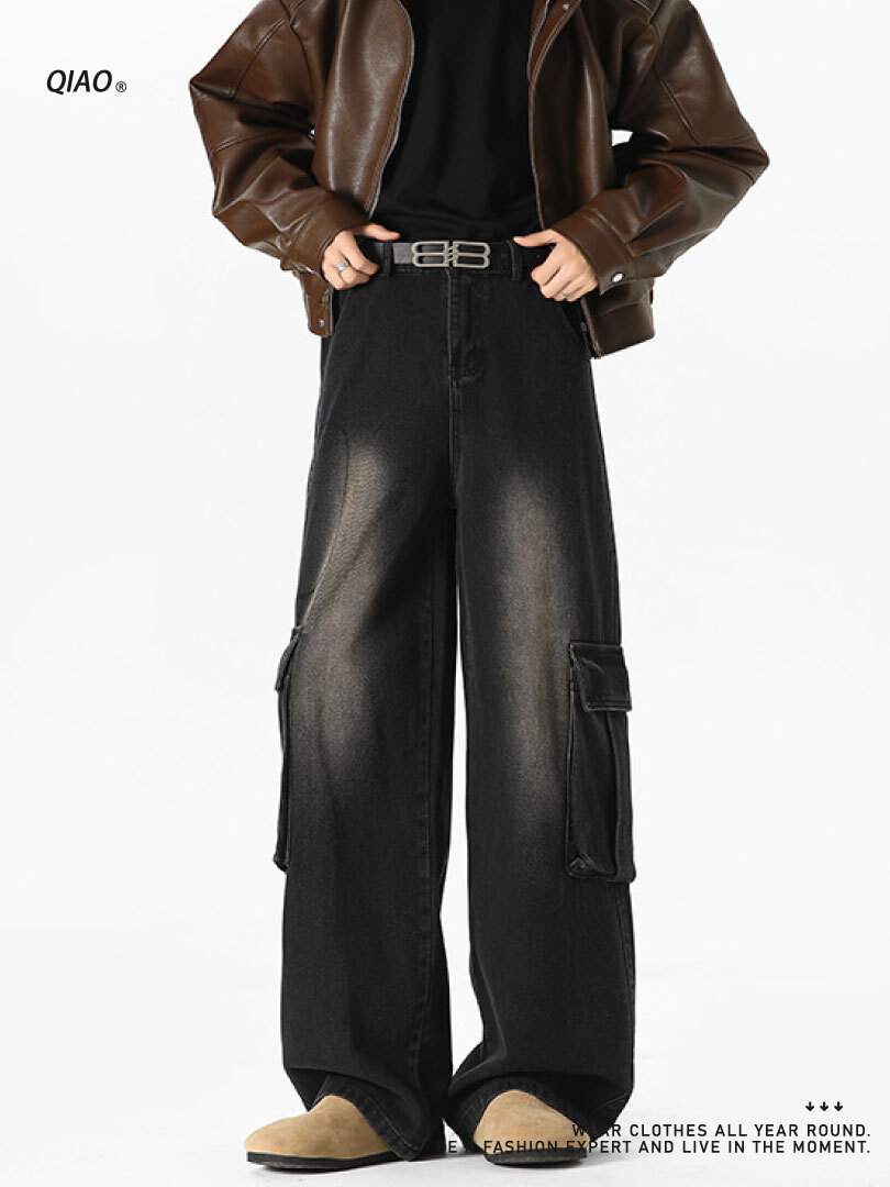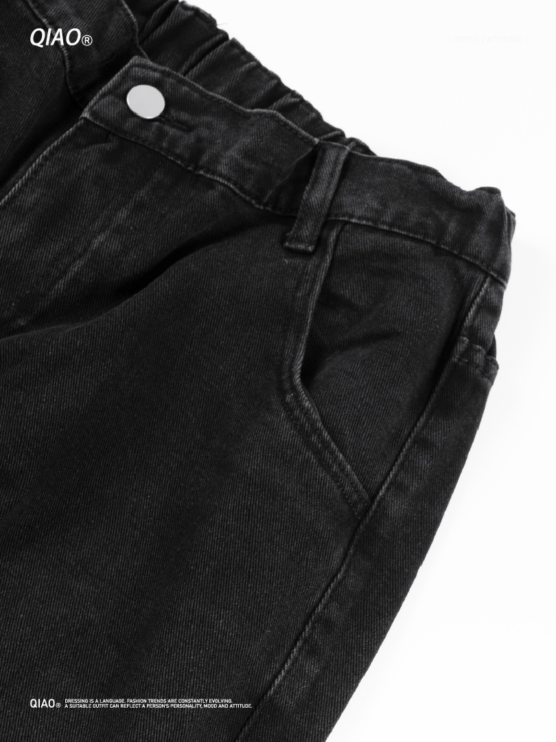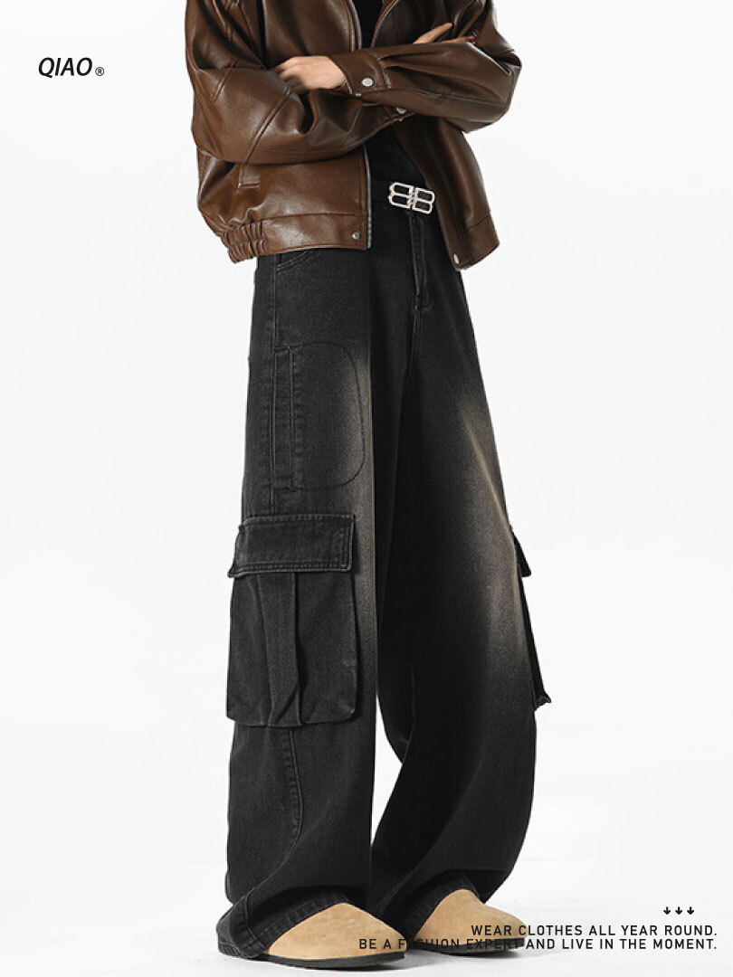 直筒寬鬆版型,搭配寬鬆上衣,黑色後背 包輕鬆完成日常街頭 look。