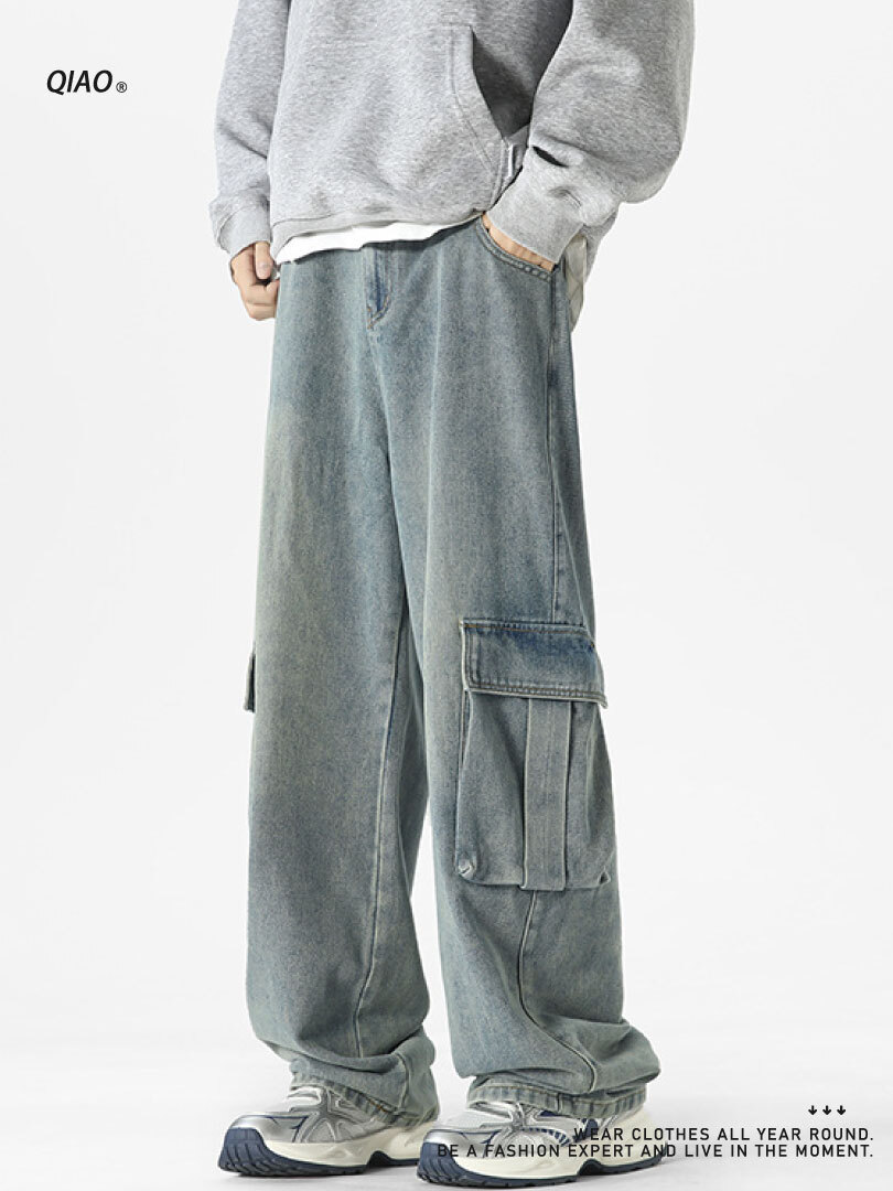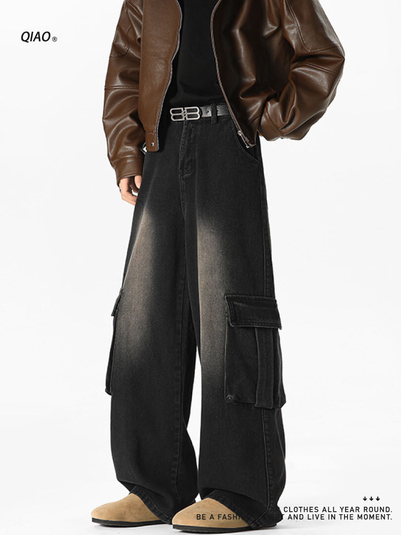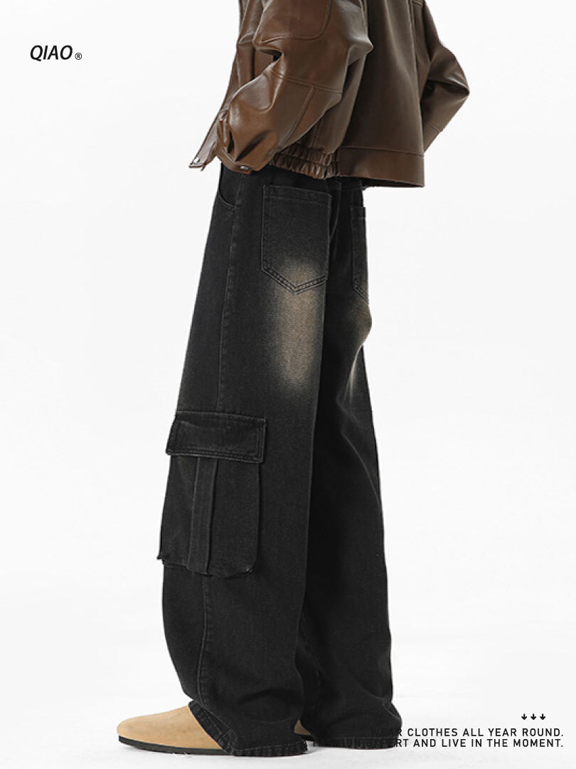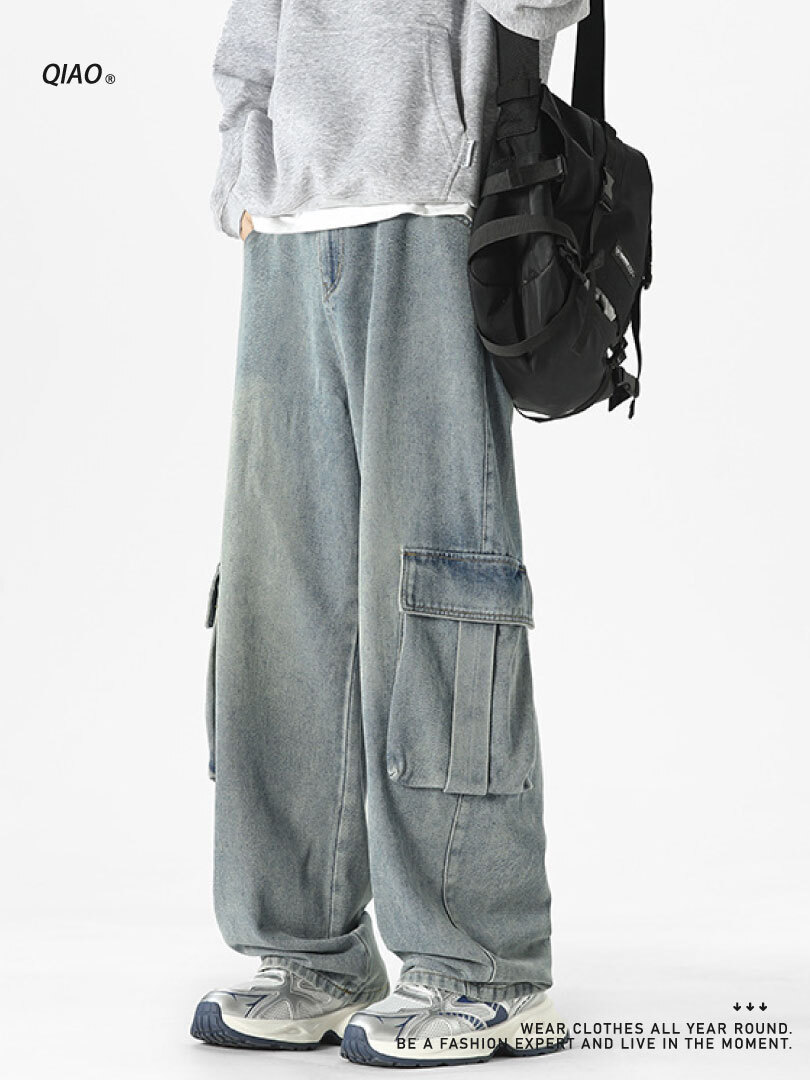 直筒寬鬆版型,搭配寬鬆上衣,黑色後背 包輕鬆完成日常街頭 look。