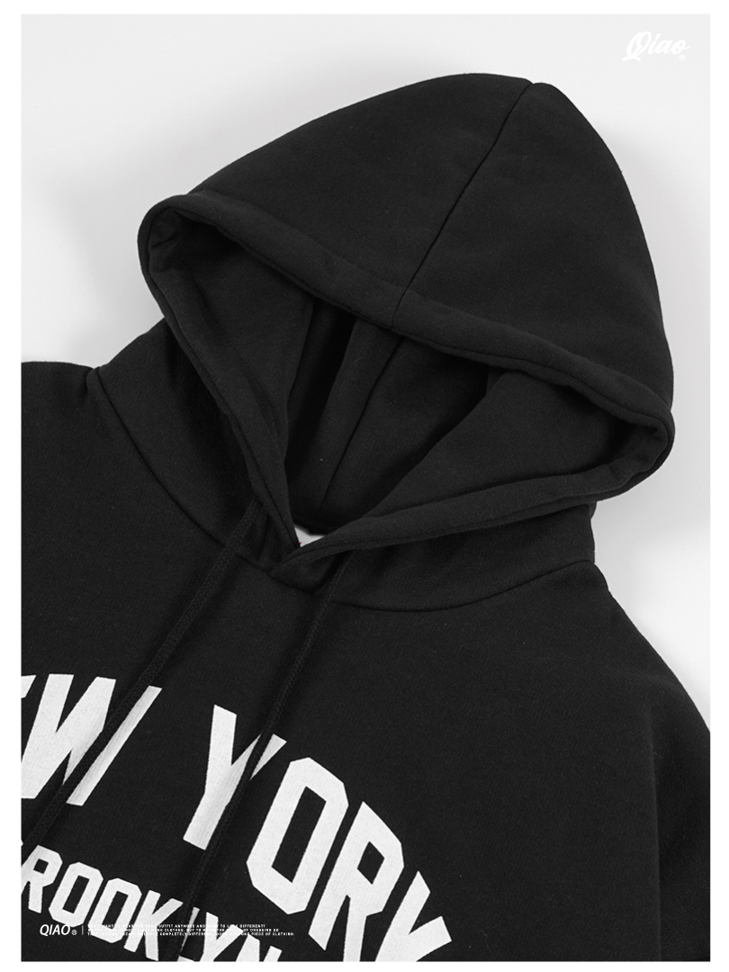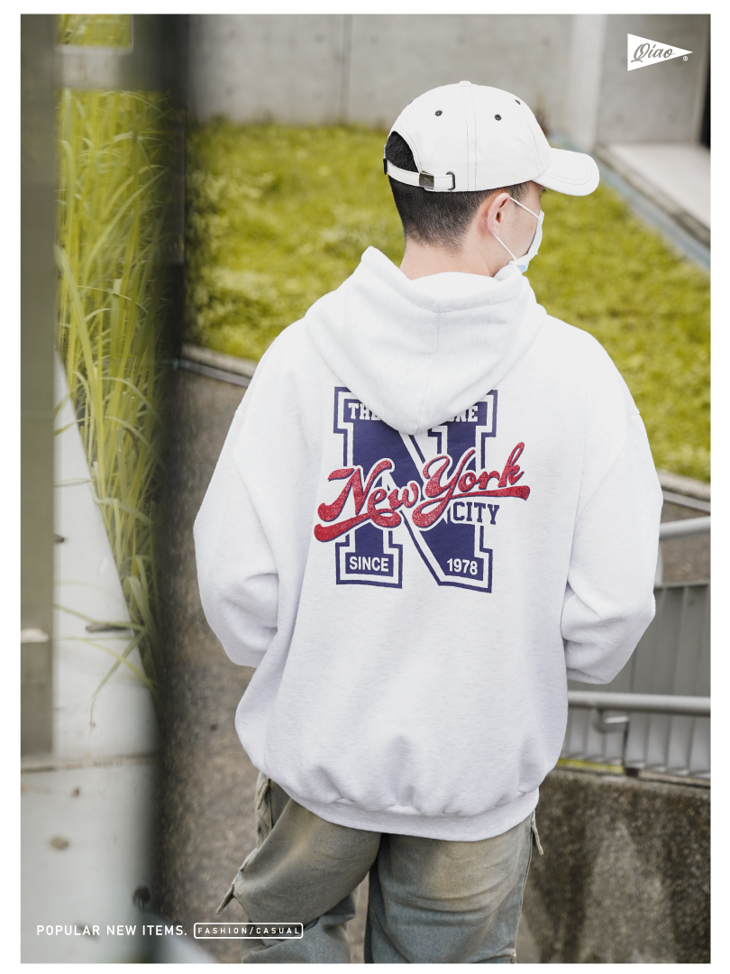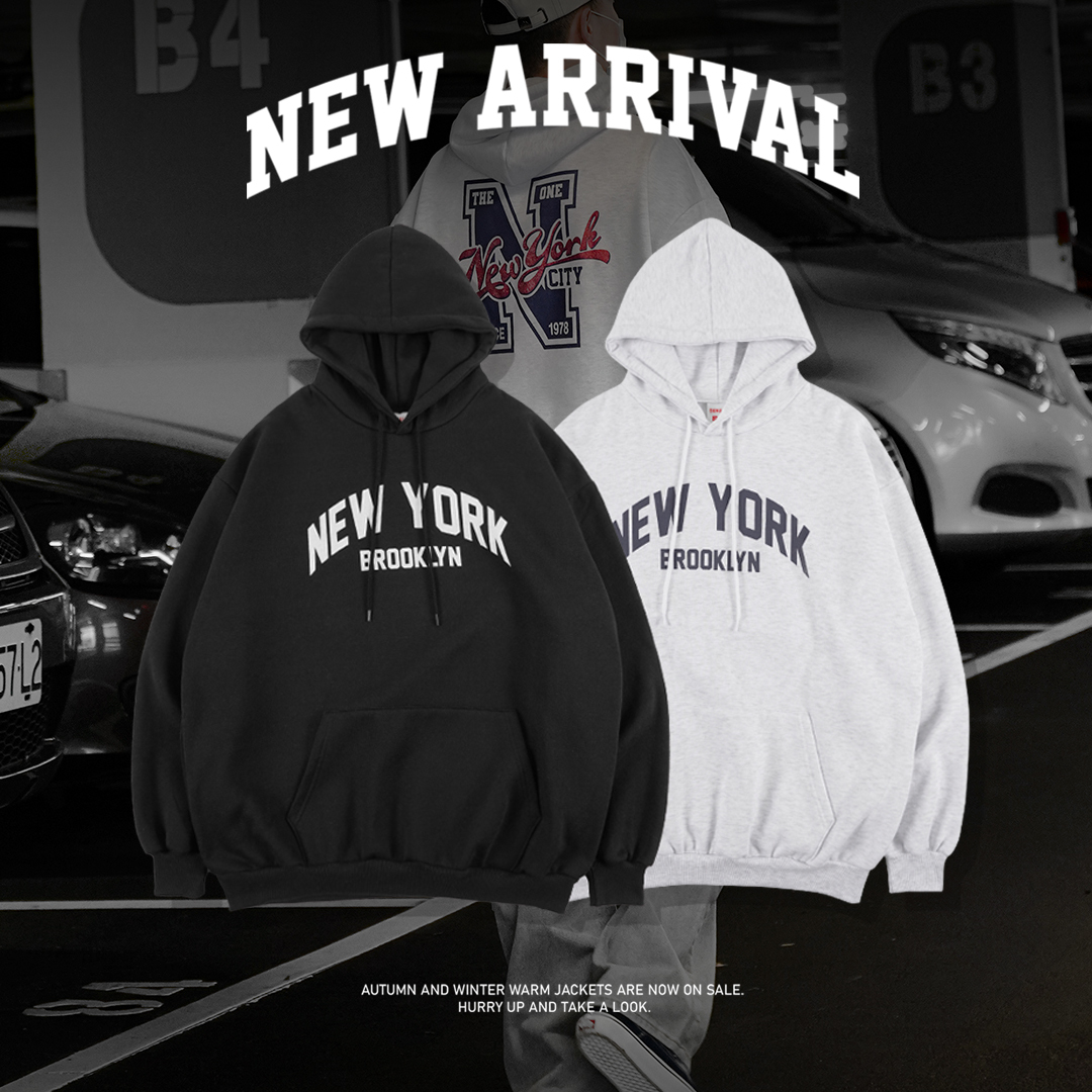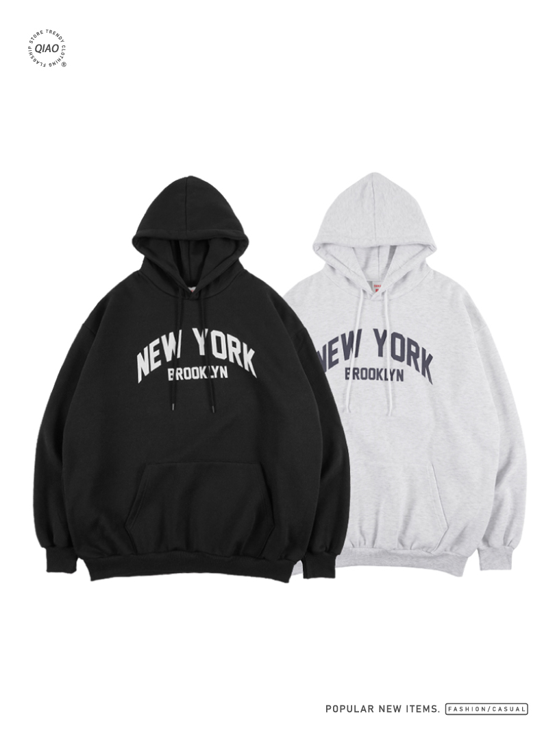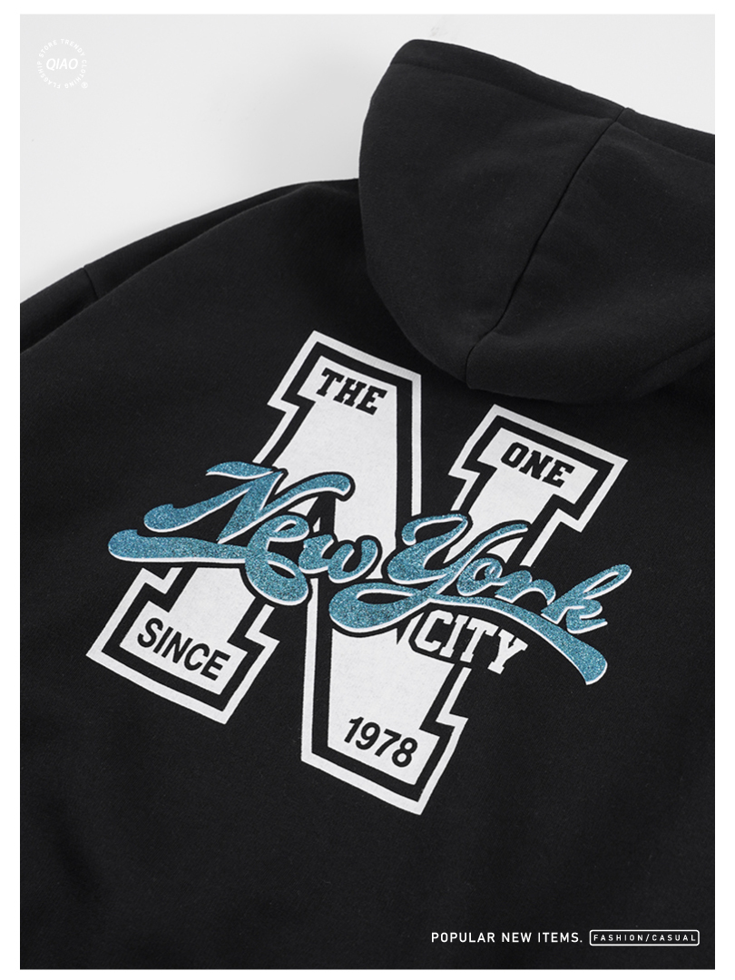 NEW YORK 閃銀印刷 連帽T 內刷毛 寬鬆版型 長袖 寬鬆帽T 帽T 情侶