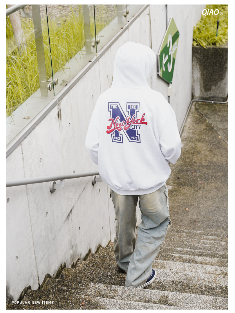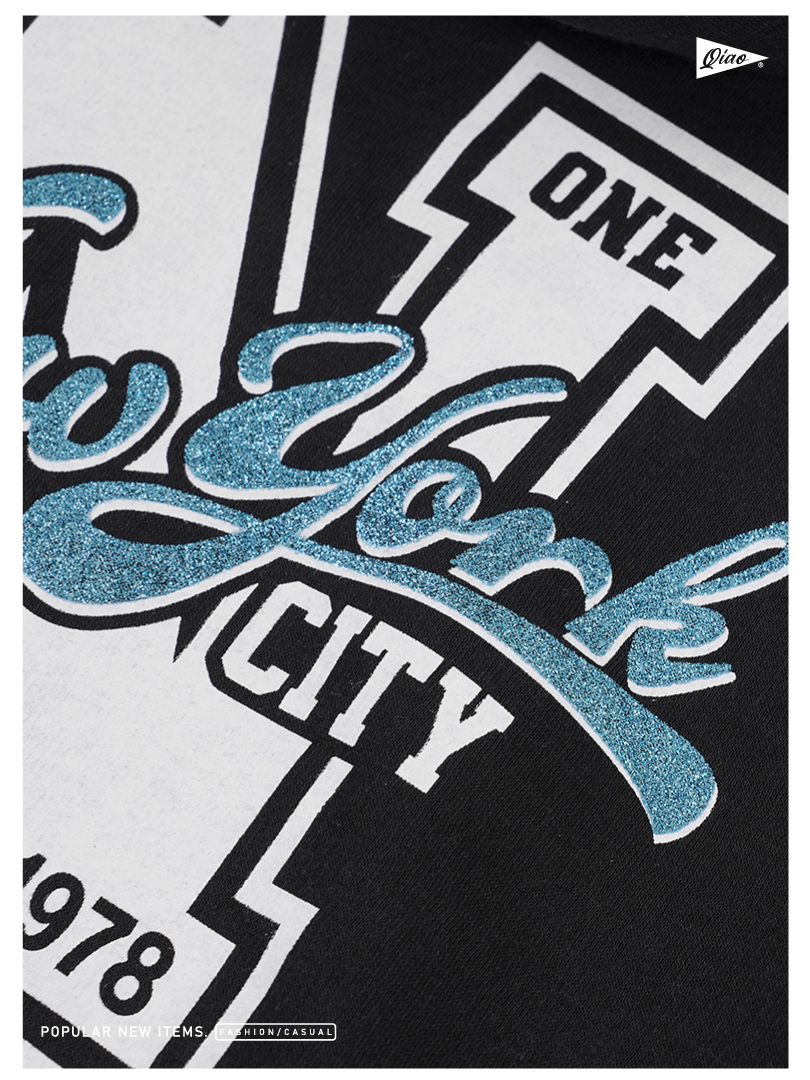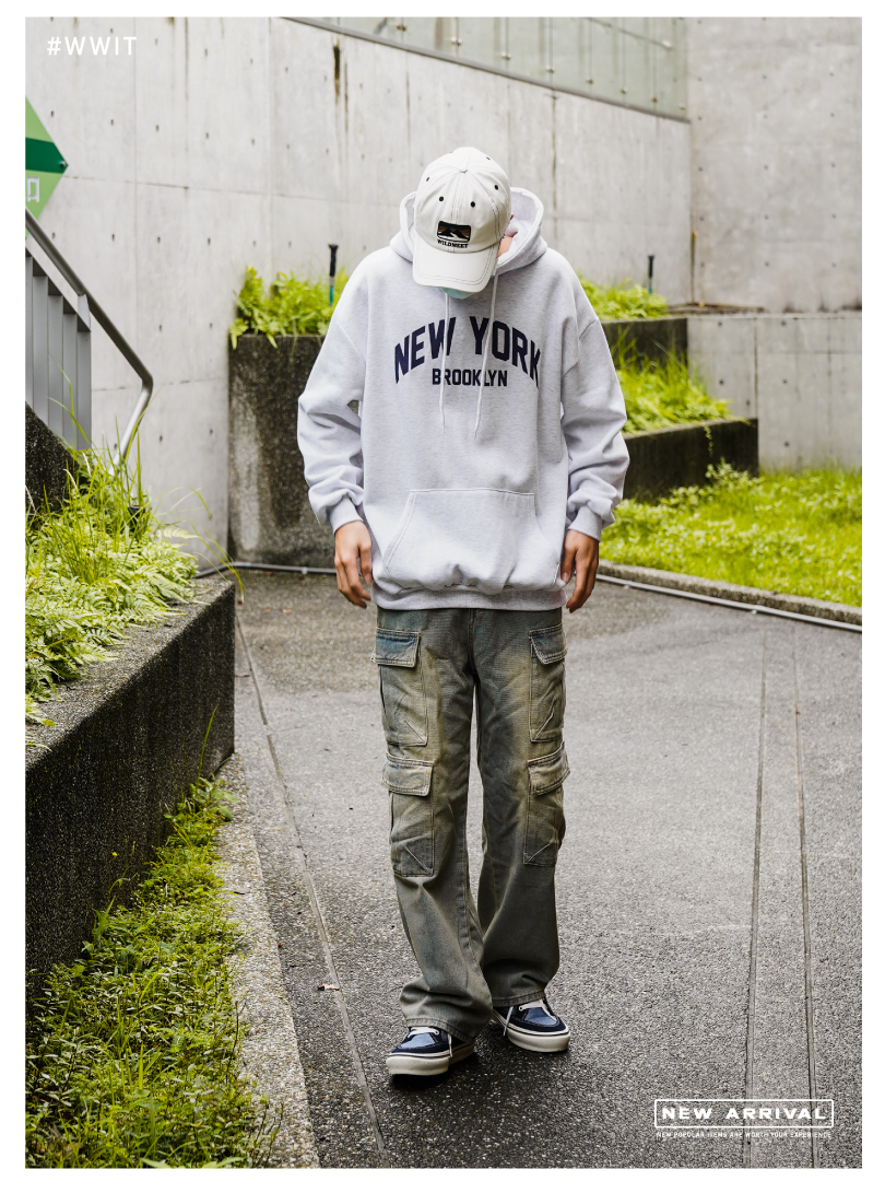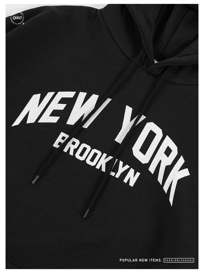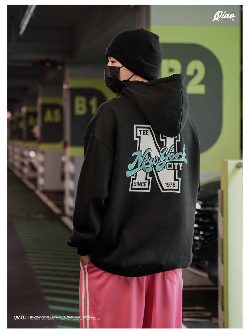NEW YORK 閃銀印刷 連帽T 內刷毛 寬鬆版型 長袖 寬鬆帽T 帽T 情侶
