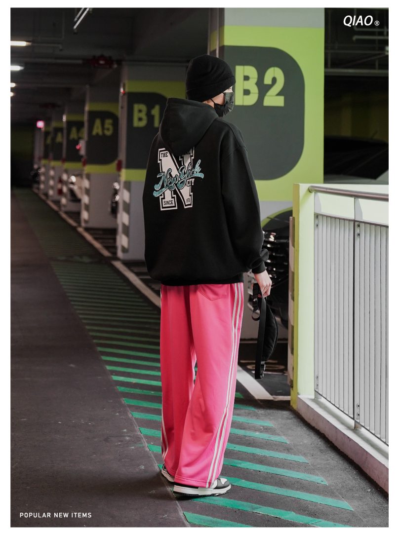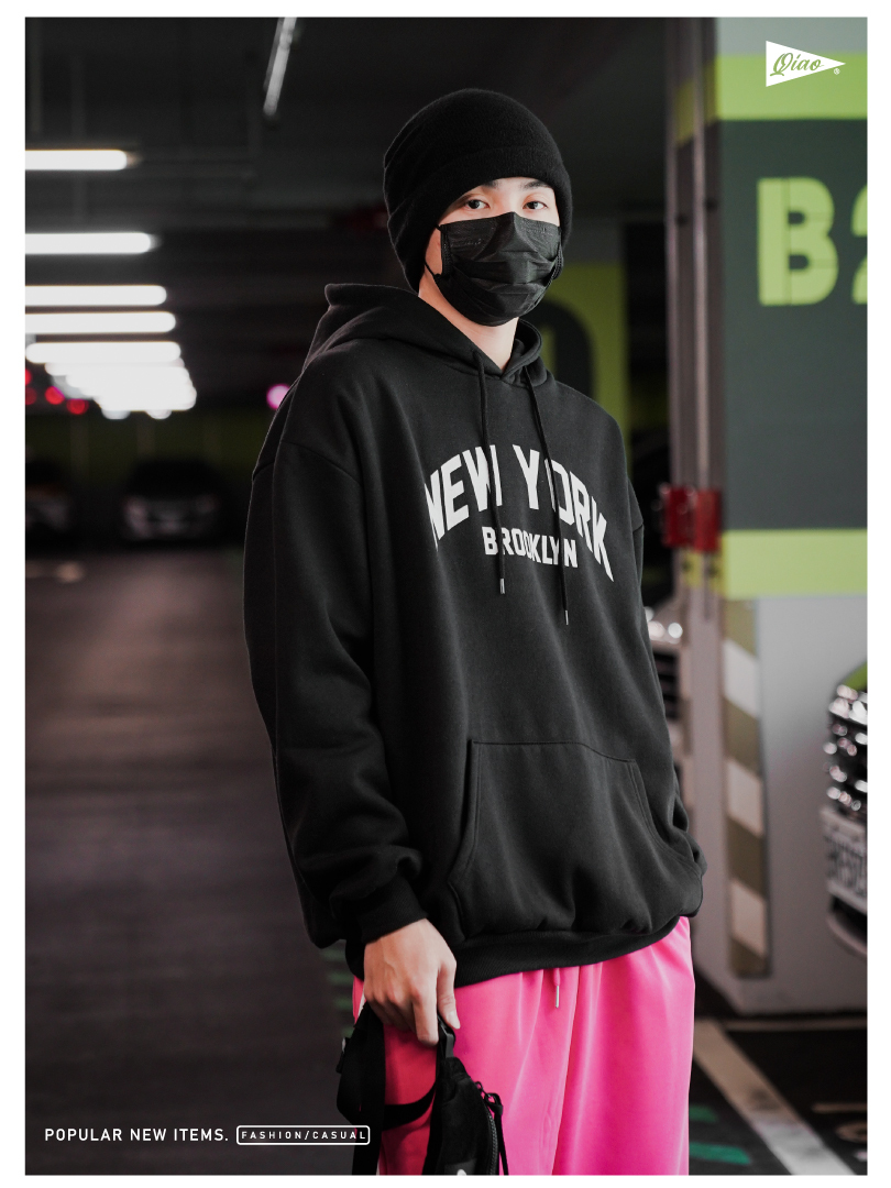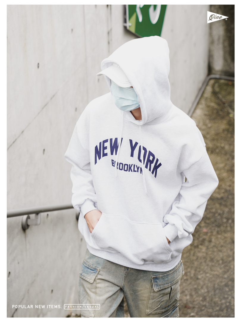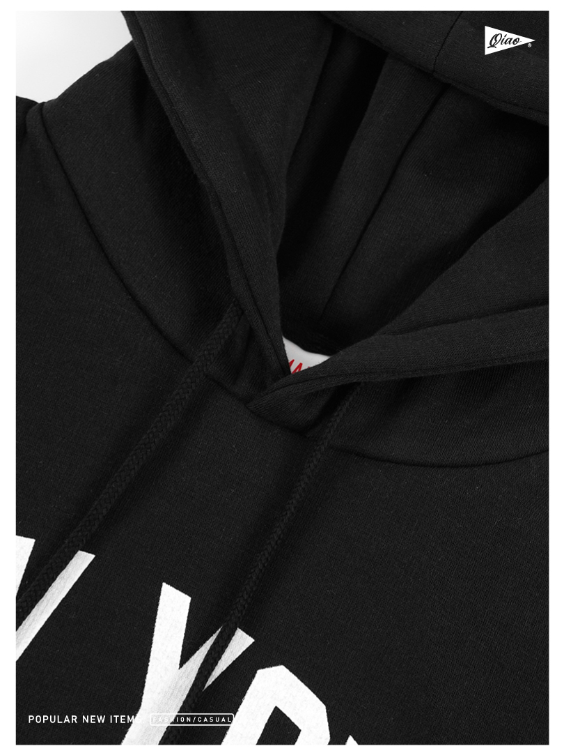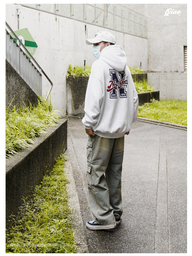 NEW YORK 閃銀印刷 連帽T 內刷毛 寬鬆版型 長袖 寬鬆帽T 帽T 情侶