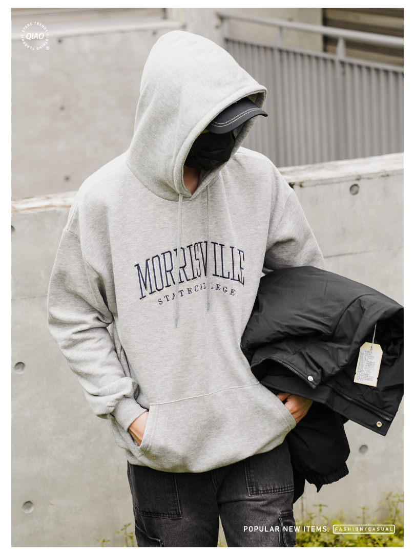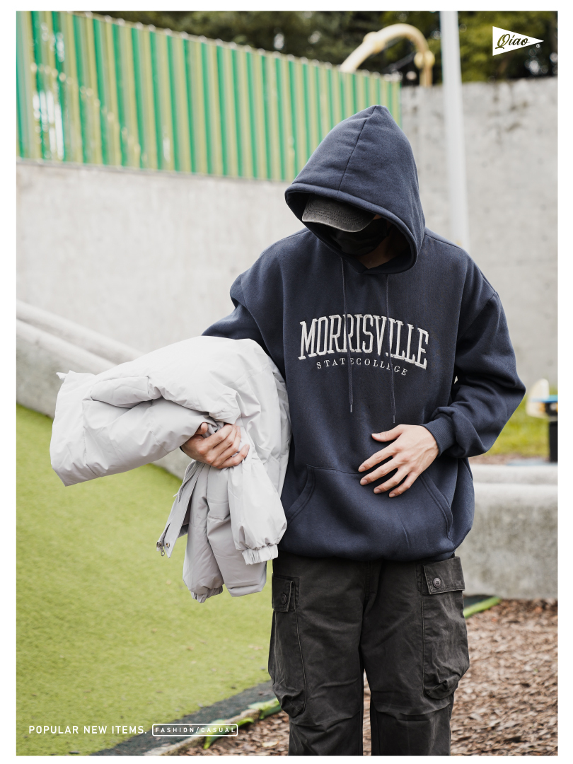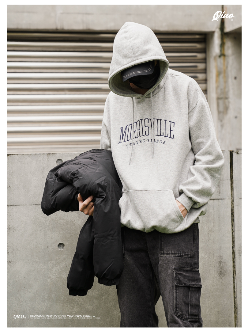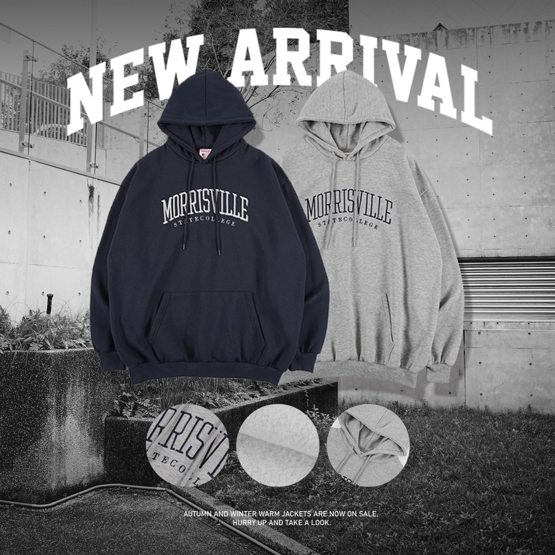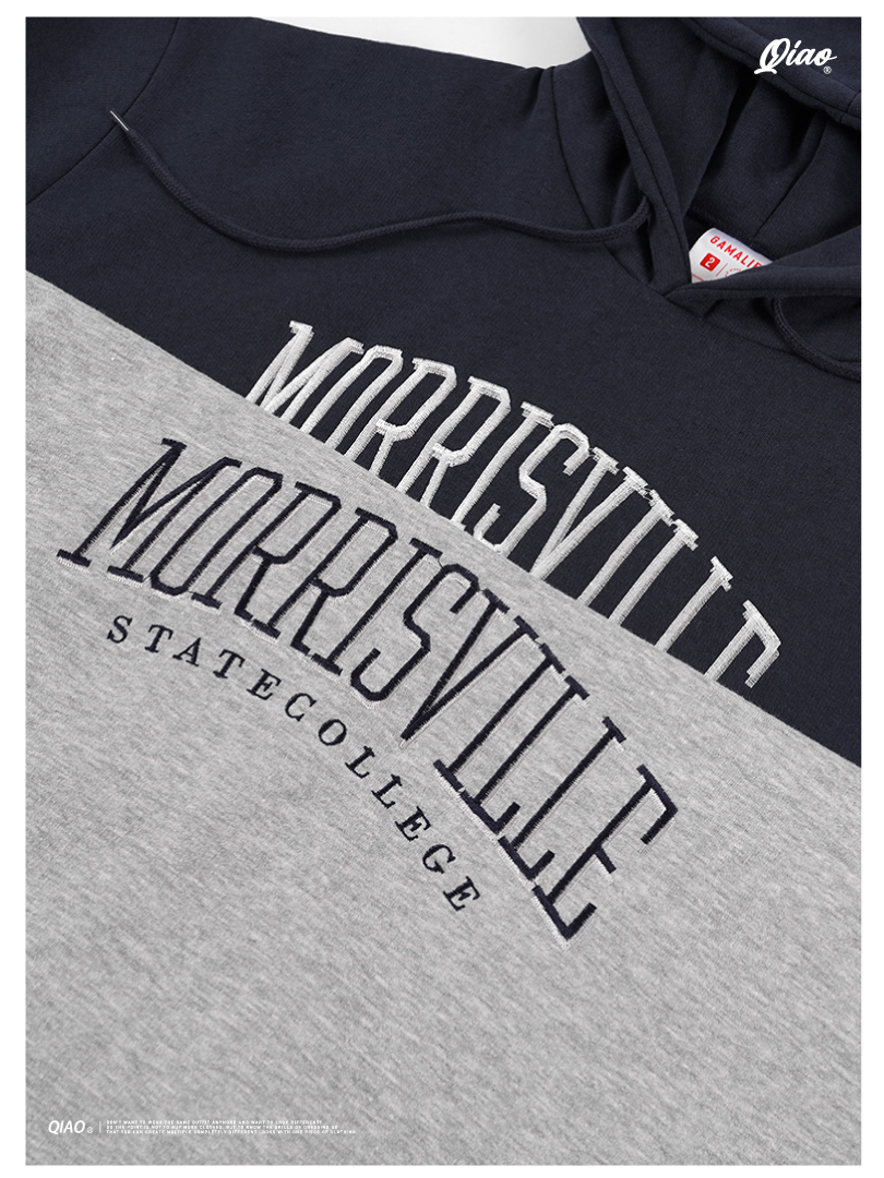北卡MORRISVILLE 殘影電繡 連帽T 刷毛帽T 寬鬆版型 長袖 寬鬆帽T