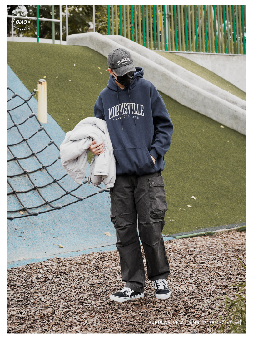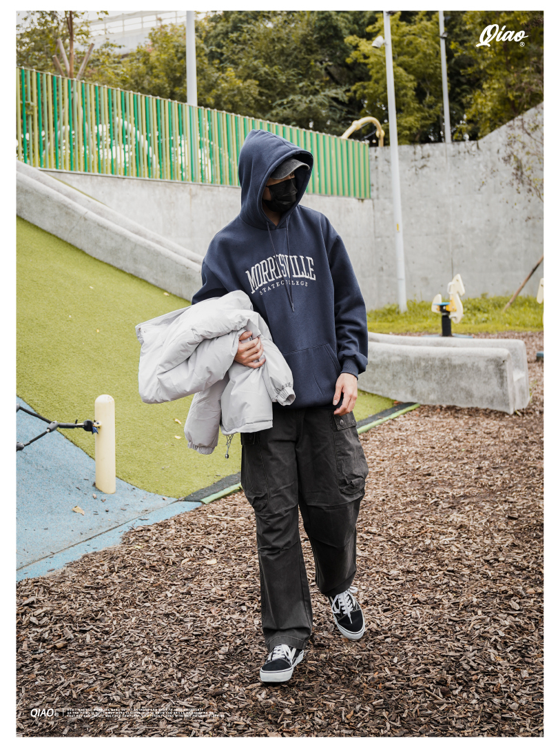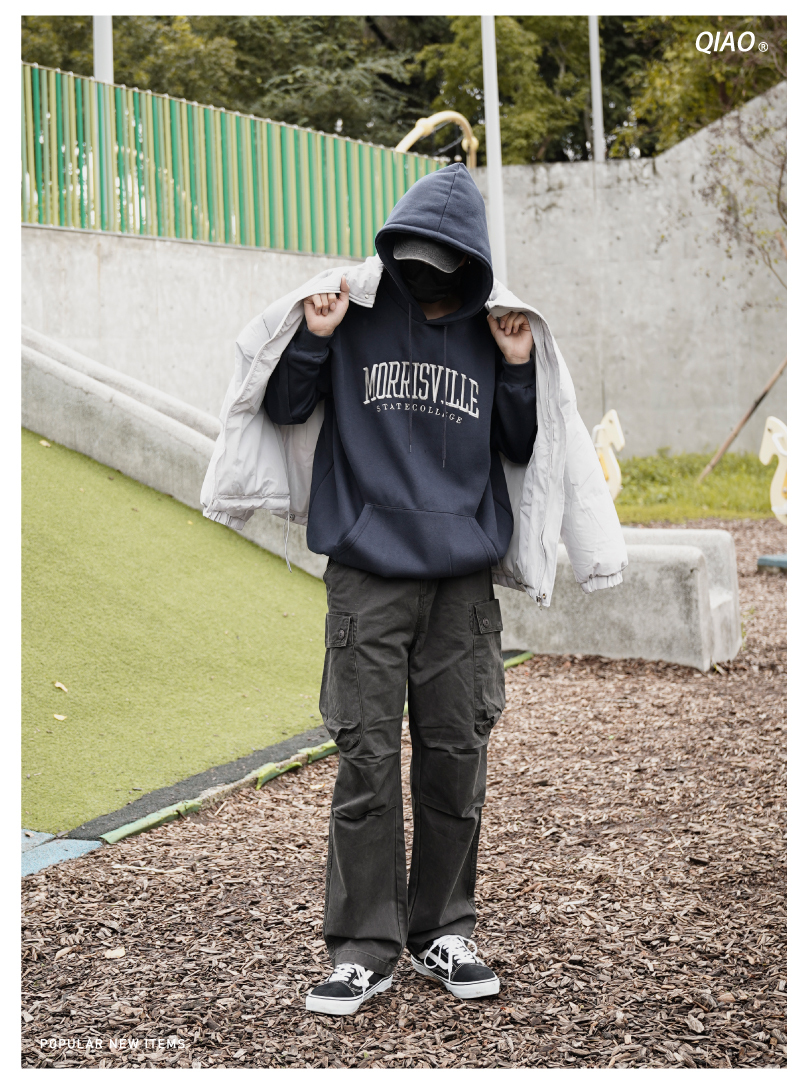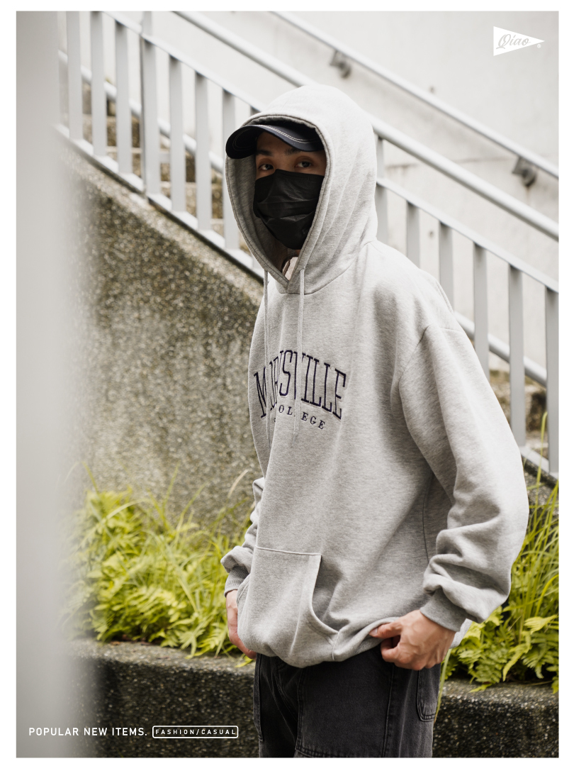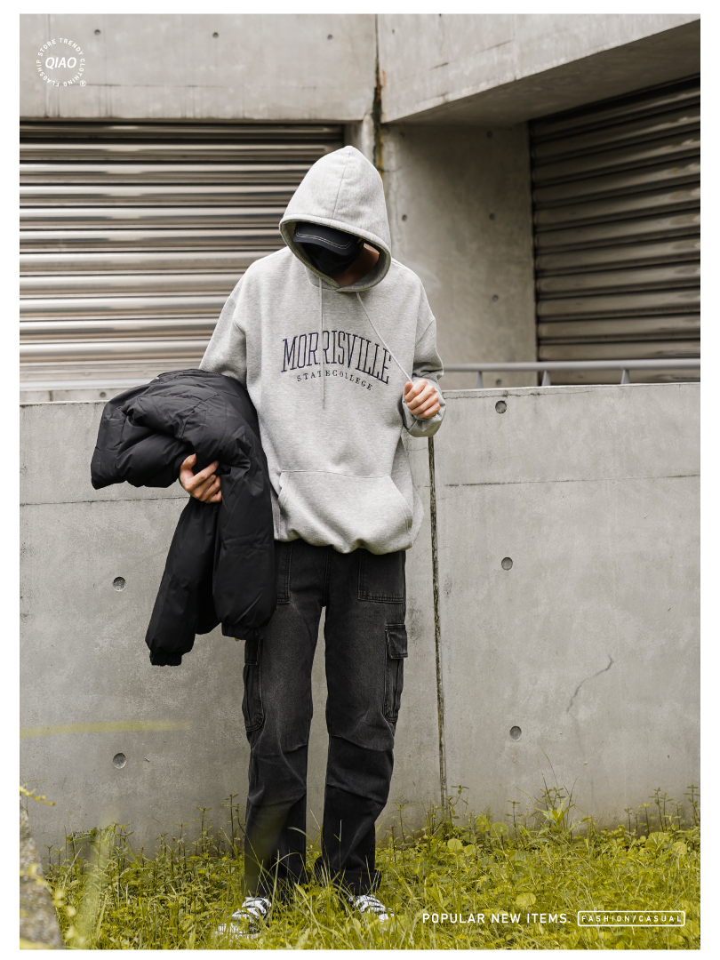 北卡MORRISVILLE 殘影電繡 連帽T 刷毛帽T 寬鬆版型 長袖 寬鬆帽T
