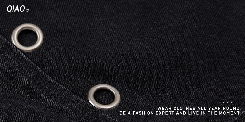 側邊金屬孔洞搭配水洗牛仔工藝,做舊自然,細節很有存在感。